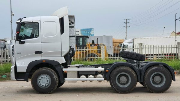Xe đầu kéo Howo A7 380HP 2 cầu 6×4, cầu dầu visai, hộp số HW19712 với 12 số tiến và 02 số lùi, không chỉ ngoại hình mạnh mẽ, khỏe khoắn, nội thất cao cấp, sang trọng mà còn được chú ý khi sử dụng động cơ mạnh mẽ hơn, bền bỉ, tiết kiệm nhiên liệu hơn và khả năng tải trọng, vượt chướng ngại vật cực tốt.